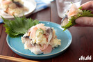 イカはワタを取り、食べよく切り軽く塩をまぶす(殺菌と下味)。熱湯でさっとゆで氷水にさらし、ザルに上げておく。