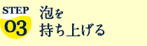 テーブルにグラスを置き、少し高めの位置からビールをグラスの中心に注ぎ、グラスの1/3程度泡ができたら、一旦止めます。