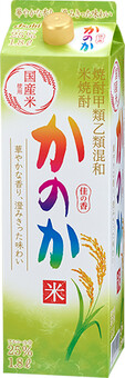 焼酎乙類の原料には国産米だけを使用し、米本来の旨みを求めて、吟醸酵母を用いて丁寧に仕込みました。「米焼酎かのか」こだわりの豊かな香りを贅沢に引き出した「香り蒸溜仕上げ原酒」とすっきりとした焼酎甲類を調和させることで、華やかな香りと澄みきった味わいの米焼酎に仕上げました。