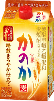 「麦焼酎かのか焙煎まろやか仕立て」のおいしさは、焙煎することでさらに引き立つ、麦本来の味わいと豊かでやさしい香り。「国産焙煎麦原酒」と焼酎甲類をほどよく調和させた、コク深くまろやかな味わいでありながら、すっきりとした後味の麦焼酎です。※国産焙煎麦原酒一部使用